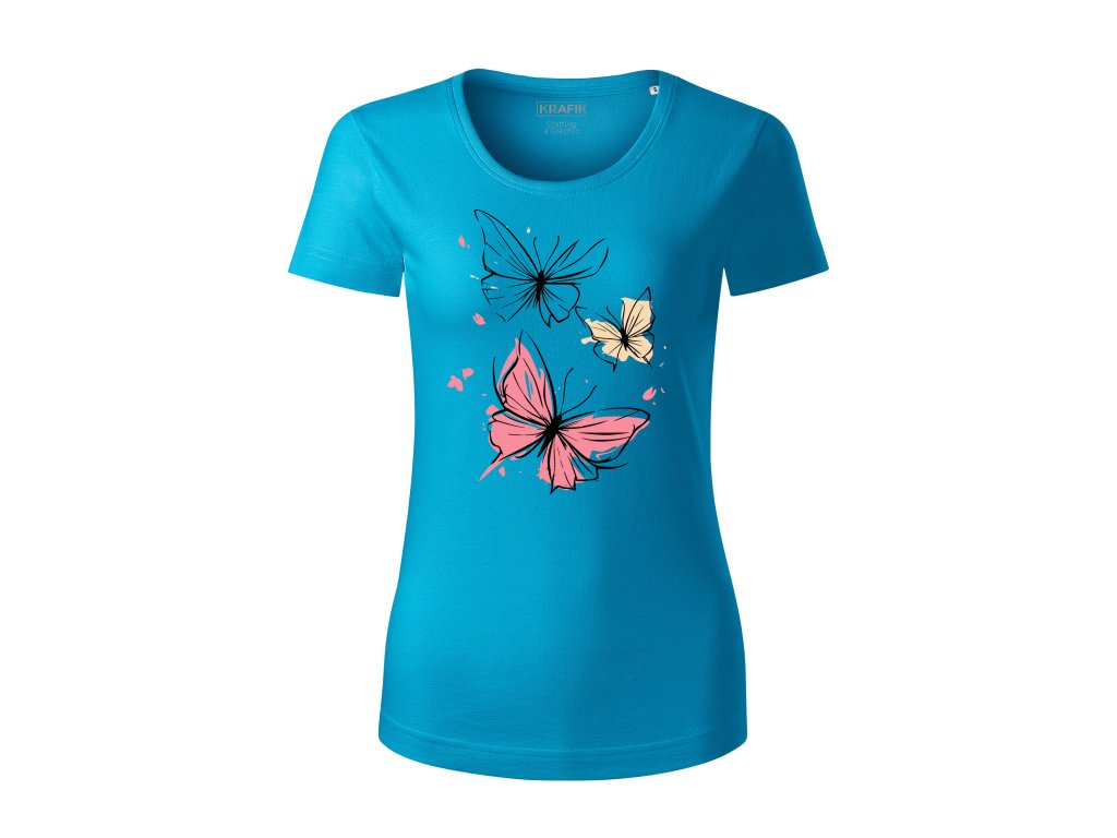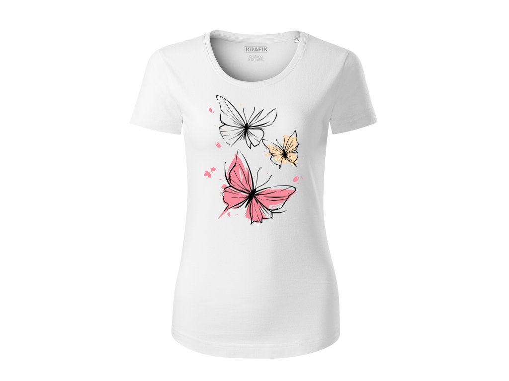Dámske tričko s organickej bavlny Abstraktné motýle