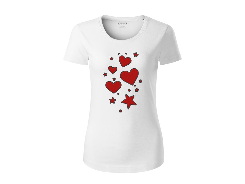 Dámske tričko s organickej bavlny Červené srdcia a hviezdy