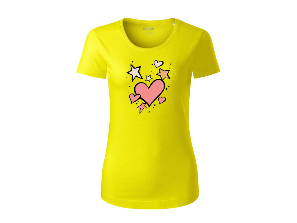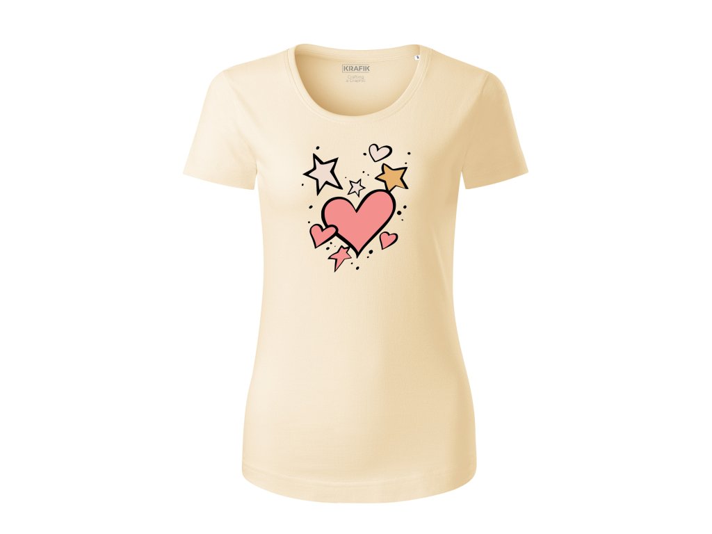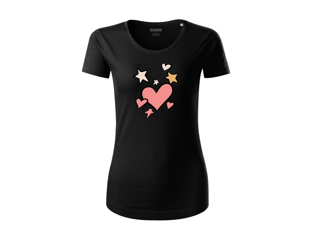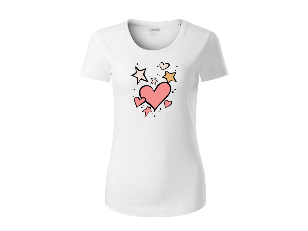 Dámske tričko s organickej bavlny Štýlové srdcia a hviezdy